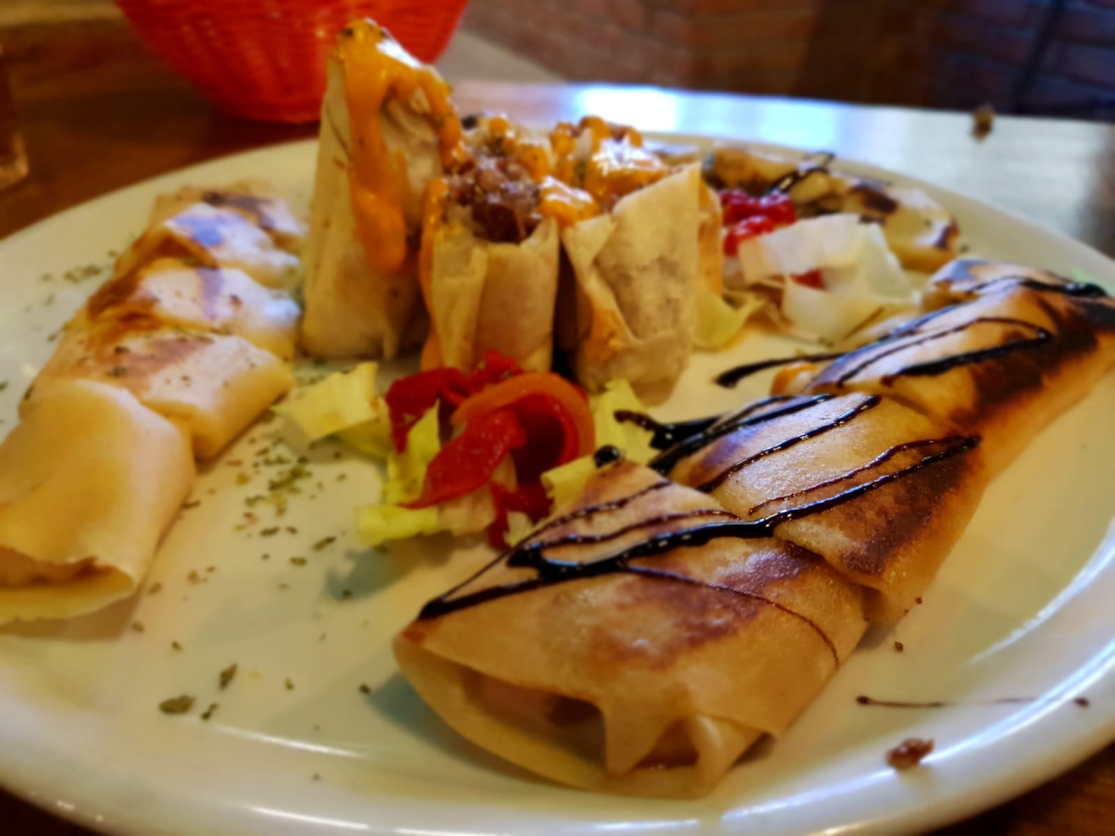 Por último, nos decantamos por uno de los platos clásicos de la anterior carta y lo hicimos a modo de surtido de crepes. Todos estaban muy buenos, unos más sabrosos que otros y el ganador sin duda, para nosotros, es el de cola de toro. Como no somos muy de postres, guardamos un hueco y cerramos con un clásico: las lagrimitas de pollo, de nuevo comida de la de casa con mucho sabor del bueno y pollo del de verdad.