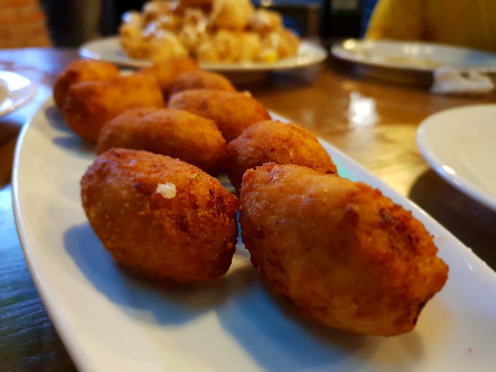 Si eres lector nuestro, de los verdad y no te pierdes ninguno de nuestros gastro ya habrás adivinado uno de los platos de los que vamos a escribir: sí, volvimos a pedir croquetas. Estas eran de puchero y estaban como las que puedes comerte en casa: sabrosas, crujientes y con la bechamel justa, es decir, no bechamel con carne, sino carne con bechamel. Su nombre en la carta vende lo que promete «Croquetas caseras».